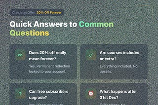 Common questions about the xGenius Christmas offer answered: Yes, 20% off forever means permanent. Yes, both trading courses are included. Offer closes…