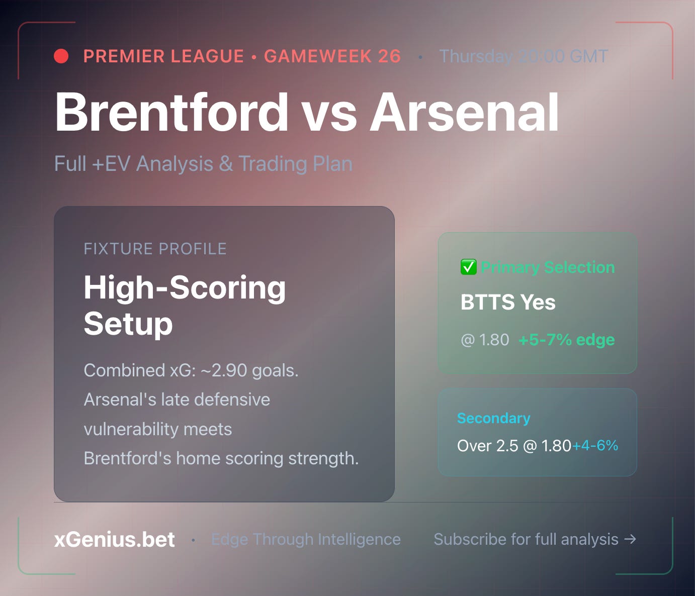 Brentford vs Arsenal: Full +EV Analysis & Trading Plan