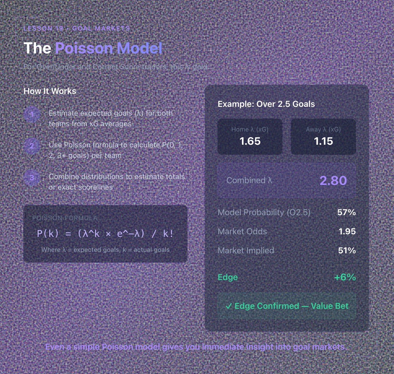 For Over/Under and Correct Score traders, the Poisson distribution is gold.