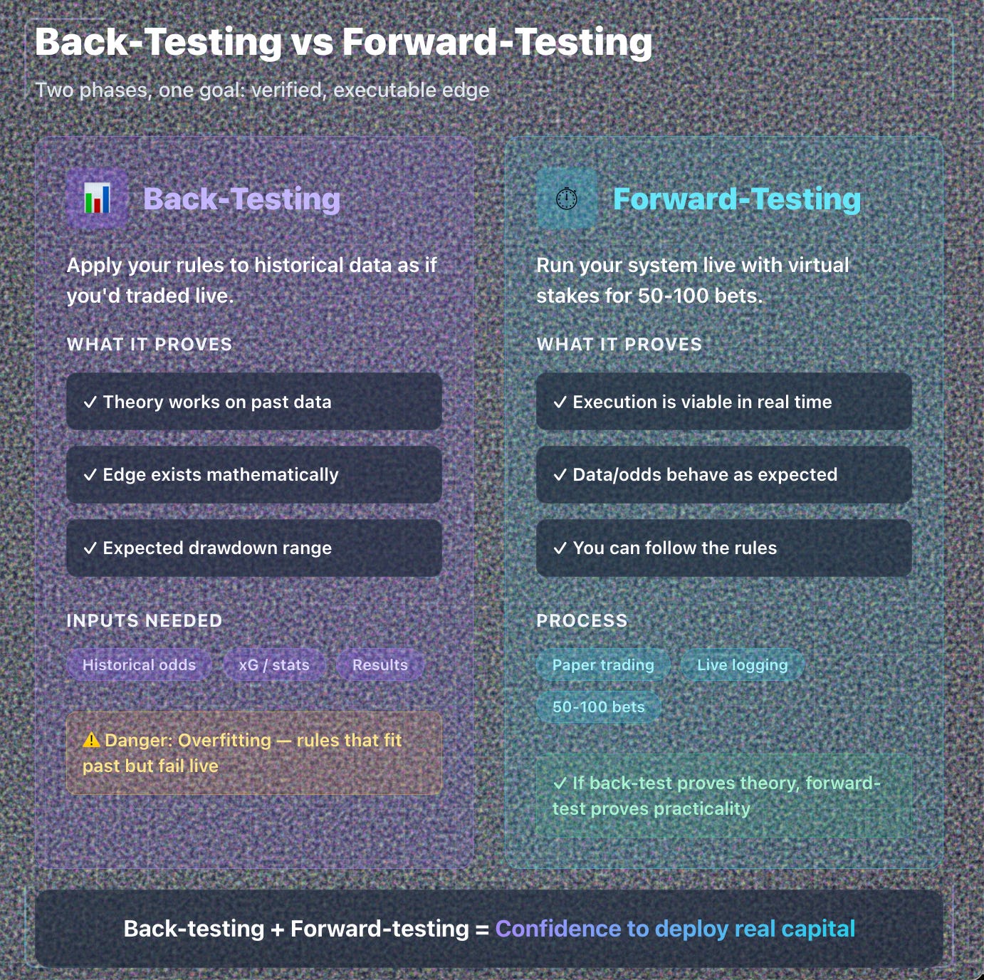 ✅ Back-testing proves a theory using history; forward-testing proves execution in real time.