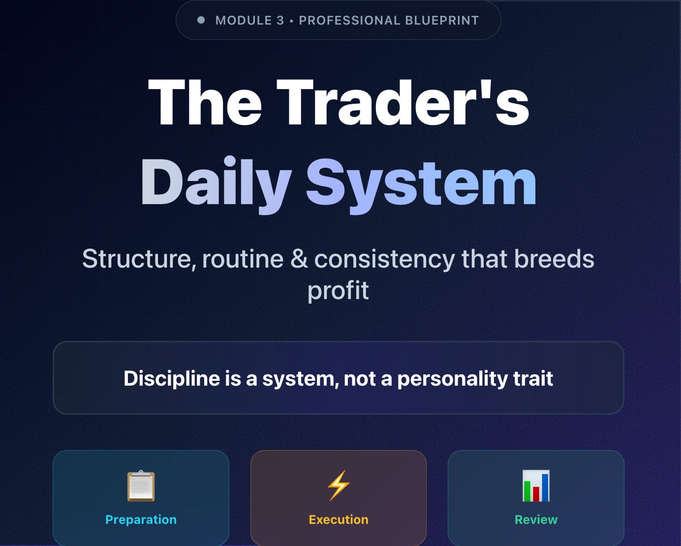 BlogTrading Blueprint: Module 3 — Daily System: Structure, Routine & ConsistencyThe Professional Football Trading BlueprintxGeniusDec 31, 2025∙ Paid1Share⚽ The Professional Football Trading Blueprint🧭 Module 3 — The Trader’s Daily System: Structure, Routine & ConsistencyBuilding a Repeatable Framework for Daily PerformanceContinue reading this post for free, courtesy of xGenius.Claim my free postOr purchase a paid subscription.Previous