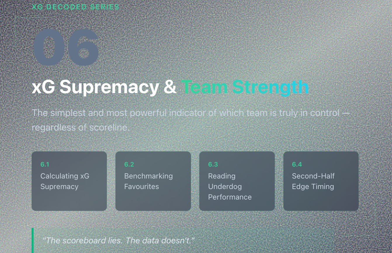 xG supremacy is the simplest and most powerful indicator of which team is truly in control of a match — regardless of scoreline.