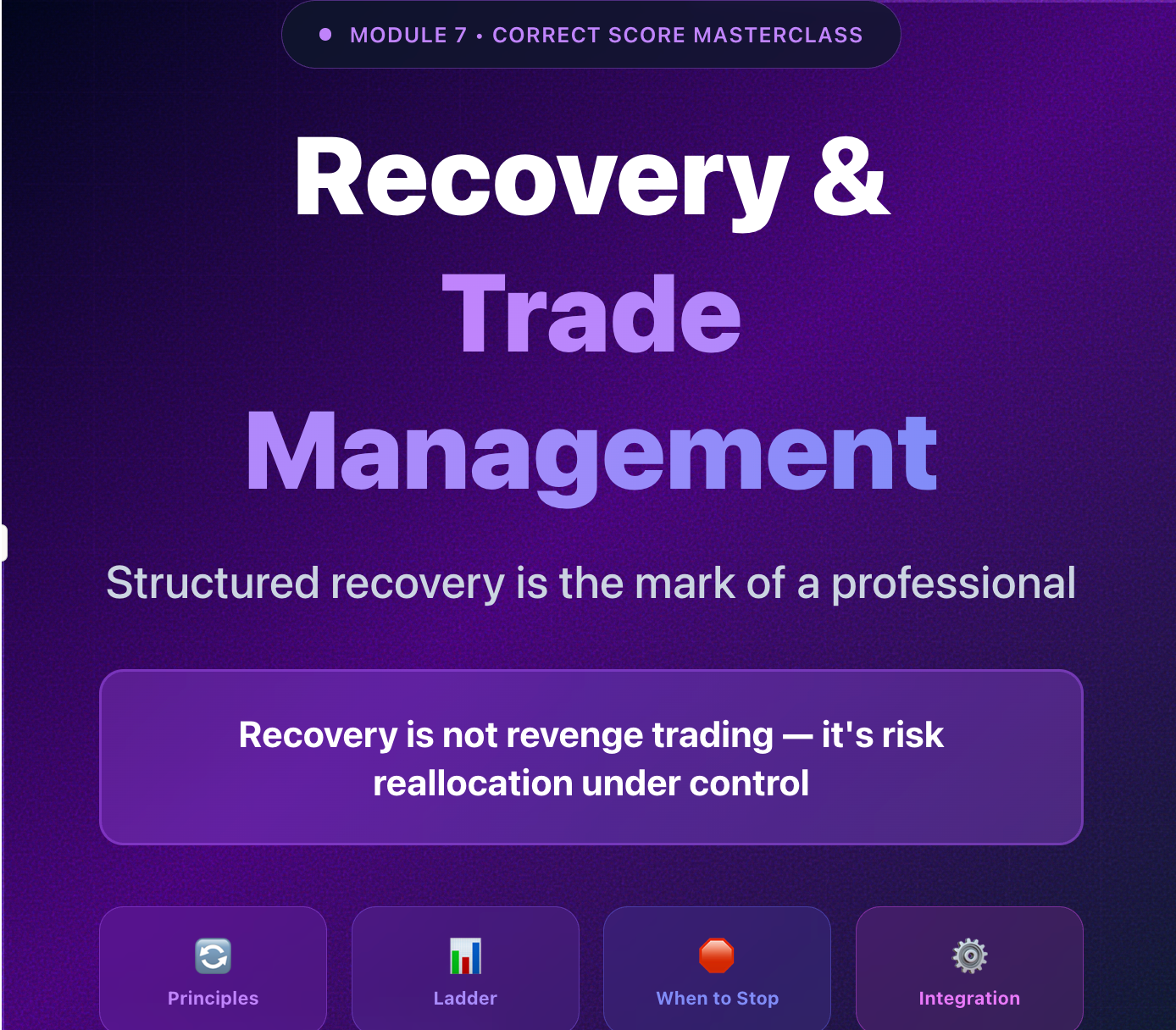 BlogCorrect Score: Module 7 – Recovery & Advanced Trade ManagementTrade Management - Recovery Trade Principles & StructurexGeniusJan 02, 2026∙ Paid2Share🔁 Module 7 – Recovery & Advanced Trade ManagementContinue reading this post for free, courtesy of xGenius.Claim my free postOr purchase a paid subscription.Previous
