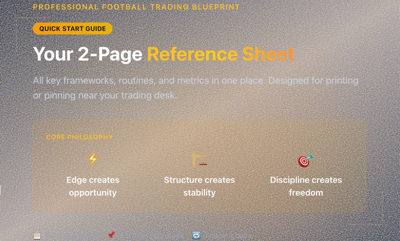 It’s designed for printing or pinning near your trading desk — a fast, daily reminder of professional standards and systems.