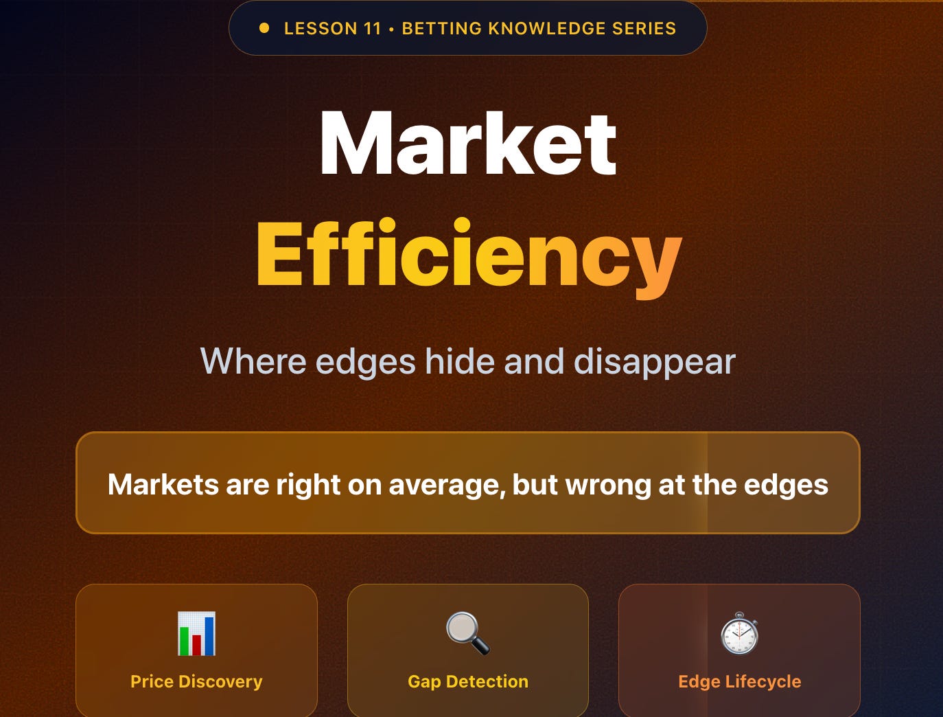 In this lesson, we’ll break down what market efficiency really means, how odds are formed, and how to spot the rare moments when price and probability drift apart.