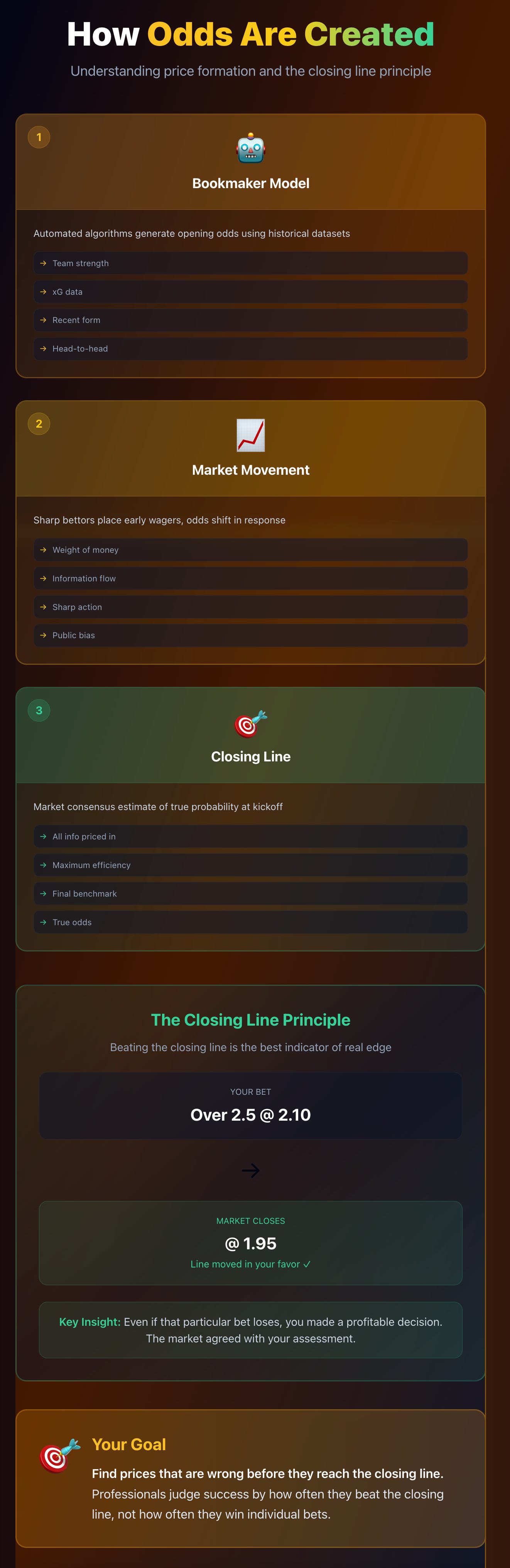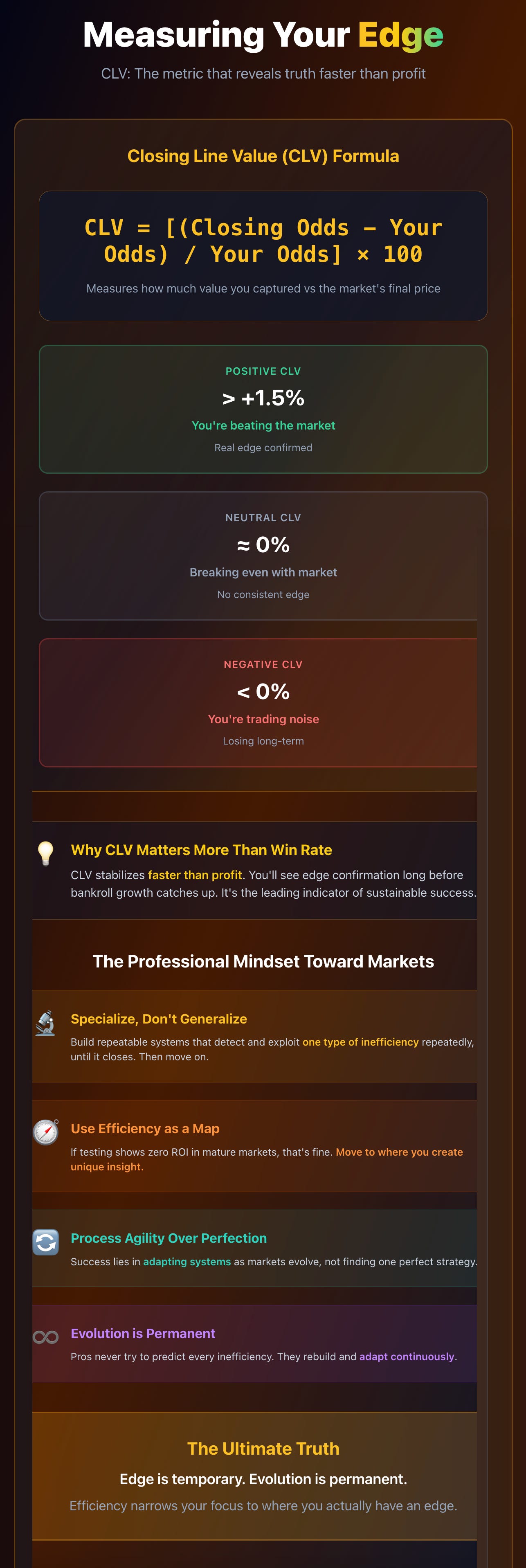 ✅ Beating the closing line = best proof of edge.