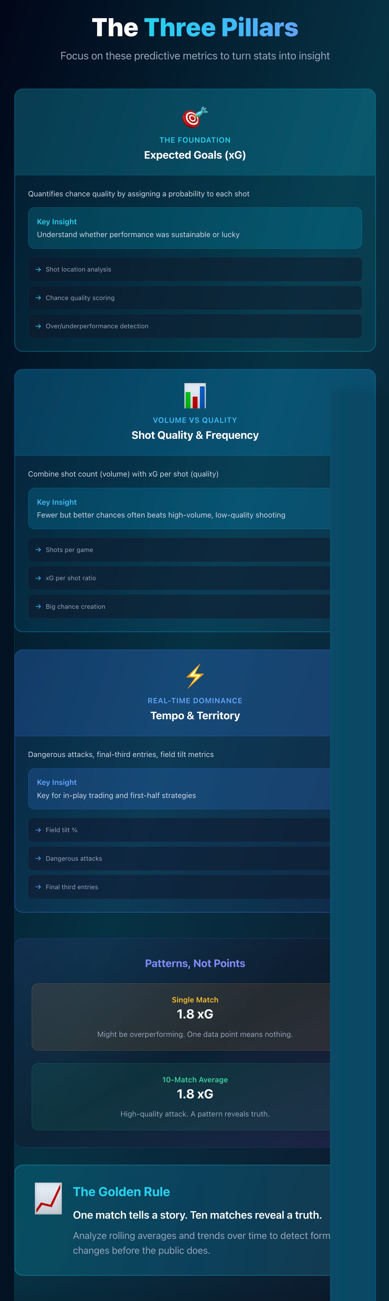 ✅ Focus on predictive data (xG, shot quality, tempo), not noise.