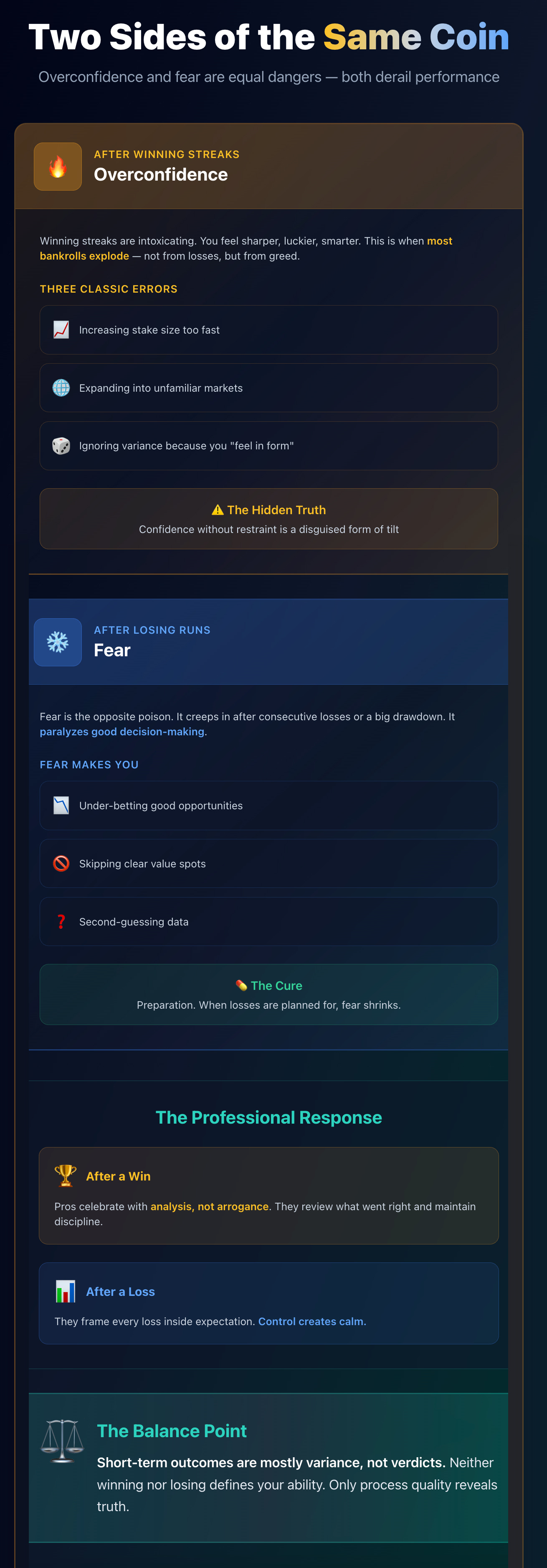 ✅ Overconfidence and fear are two sides of the same coin.