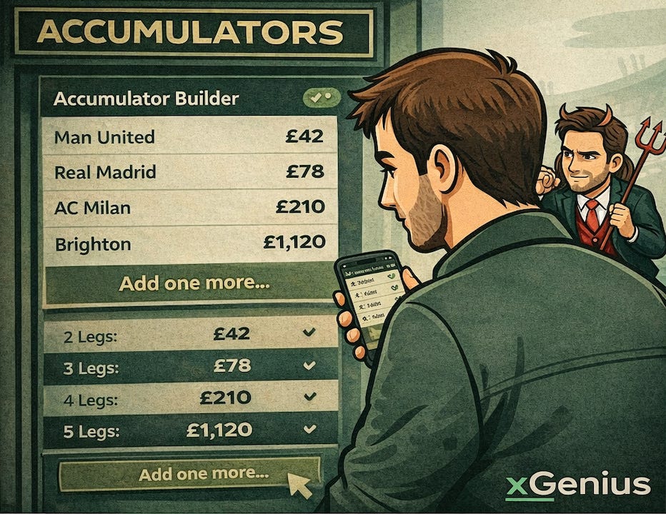 But if you are placing accumulators because you want to profit over time, because you are genuinely trying to build a process that returns more than it costs across a full season — then betting on what you could win is working directly against you.