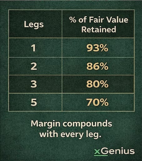 If you are like most people, you were not thinking about probability. You were not thinking about the bookmaker’s margin or the compounding overround or whether each leg carried enough expected value to justify its inclusion.