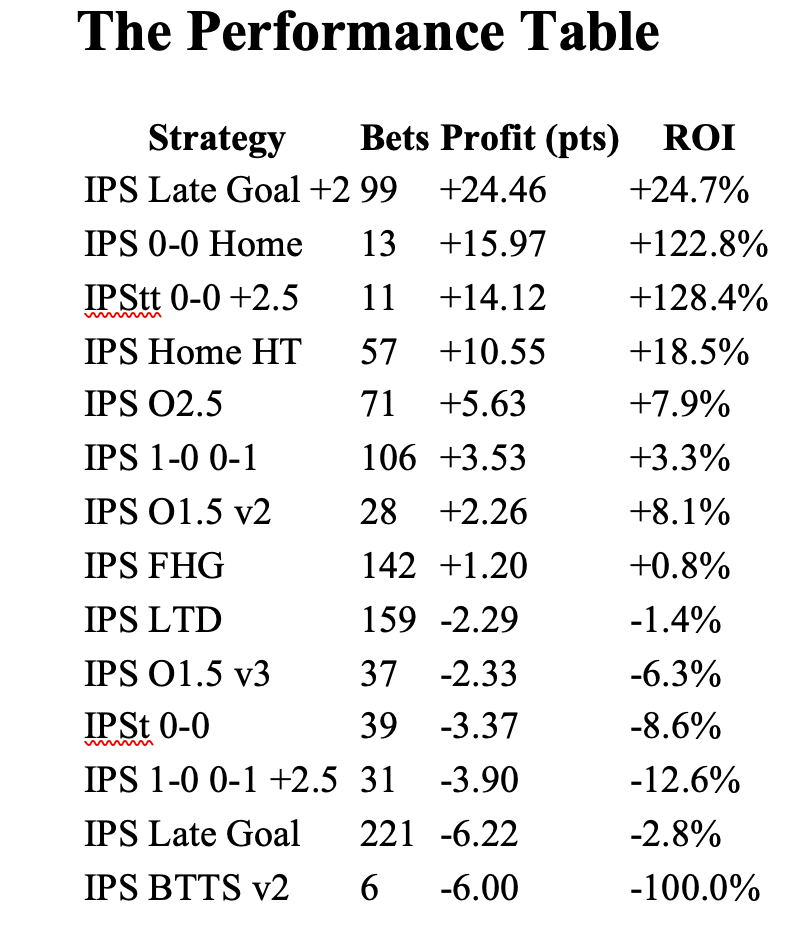 IPS Late Goal: -6.22 pts (221 bets, -2.8% ROI)