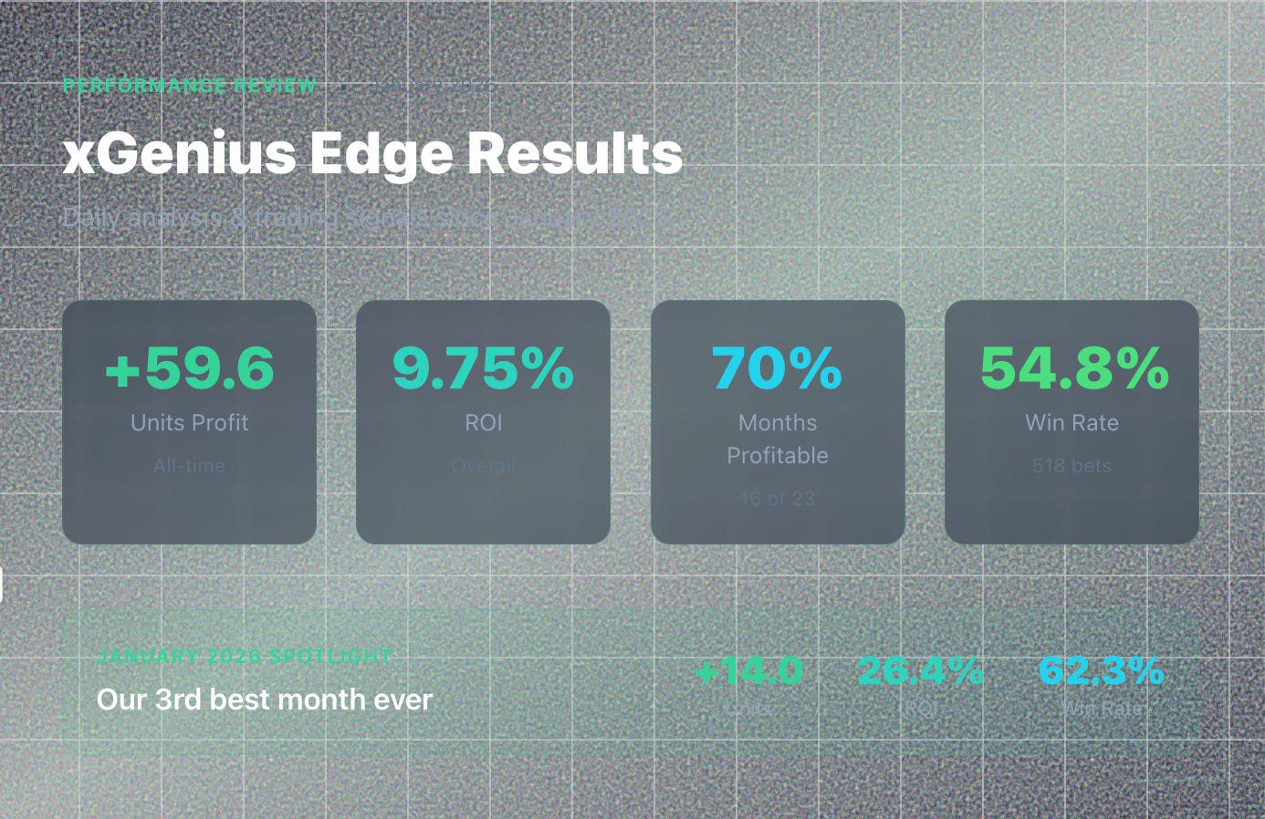 The first 10 people who sign up for xGenius Edge will also receive one month’s free access to our Premium Substack — which includes full match analyses, value reports, and in-depth trading breakdowns.