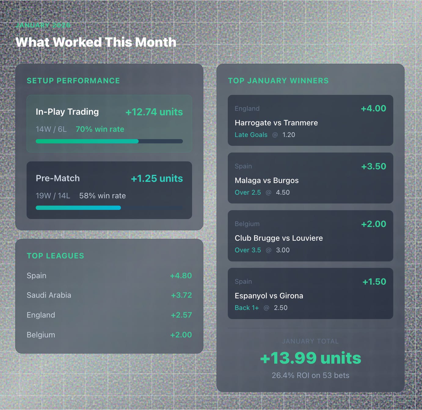 January 2026 was a good month. A very good month, actually. +13.99 units of profit at 26.4% ROI, making it our third-best month since the service launched just over a year ago.
